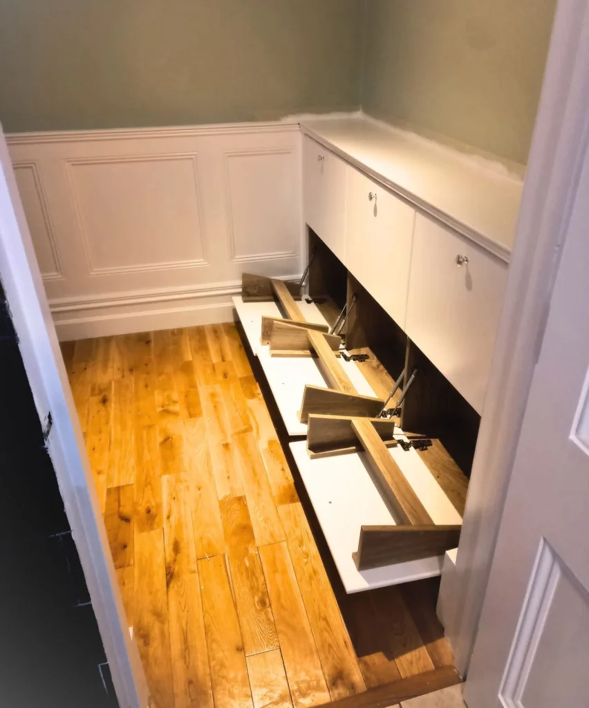 We also build alcove units, TV media wall units, wardrobes, under stairs storage, all types of cabinets and renovate stairs.