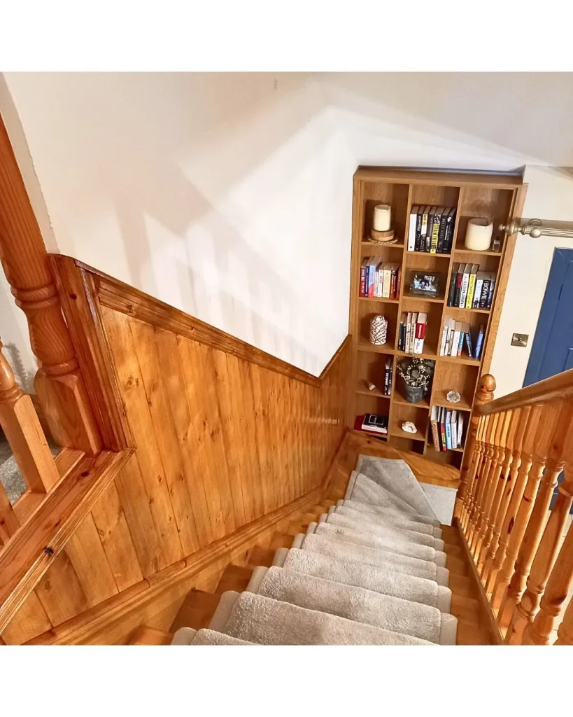 Panelling along staircase and bookcase in Knockbridge