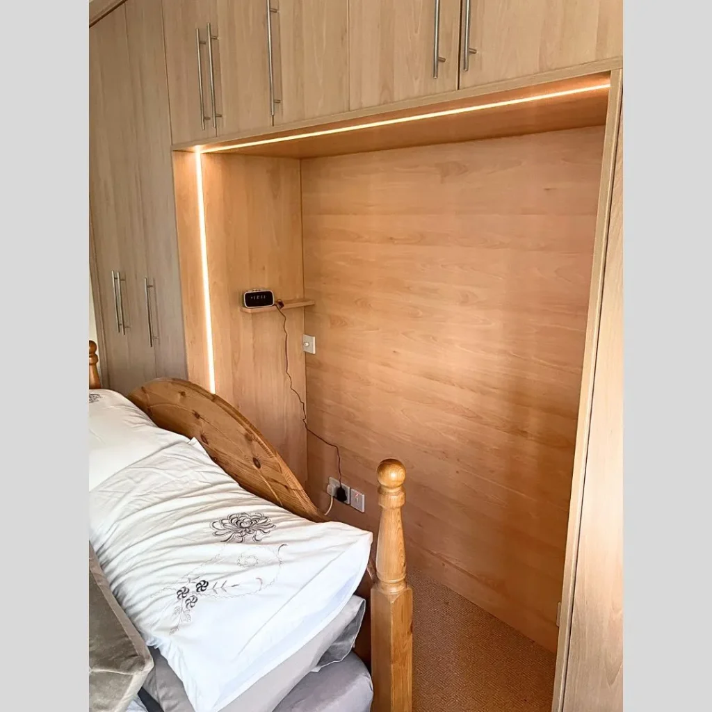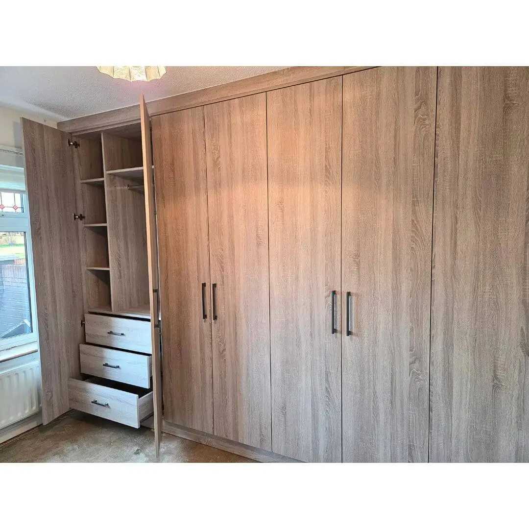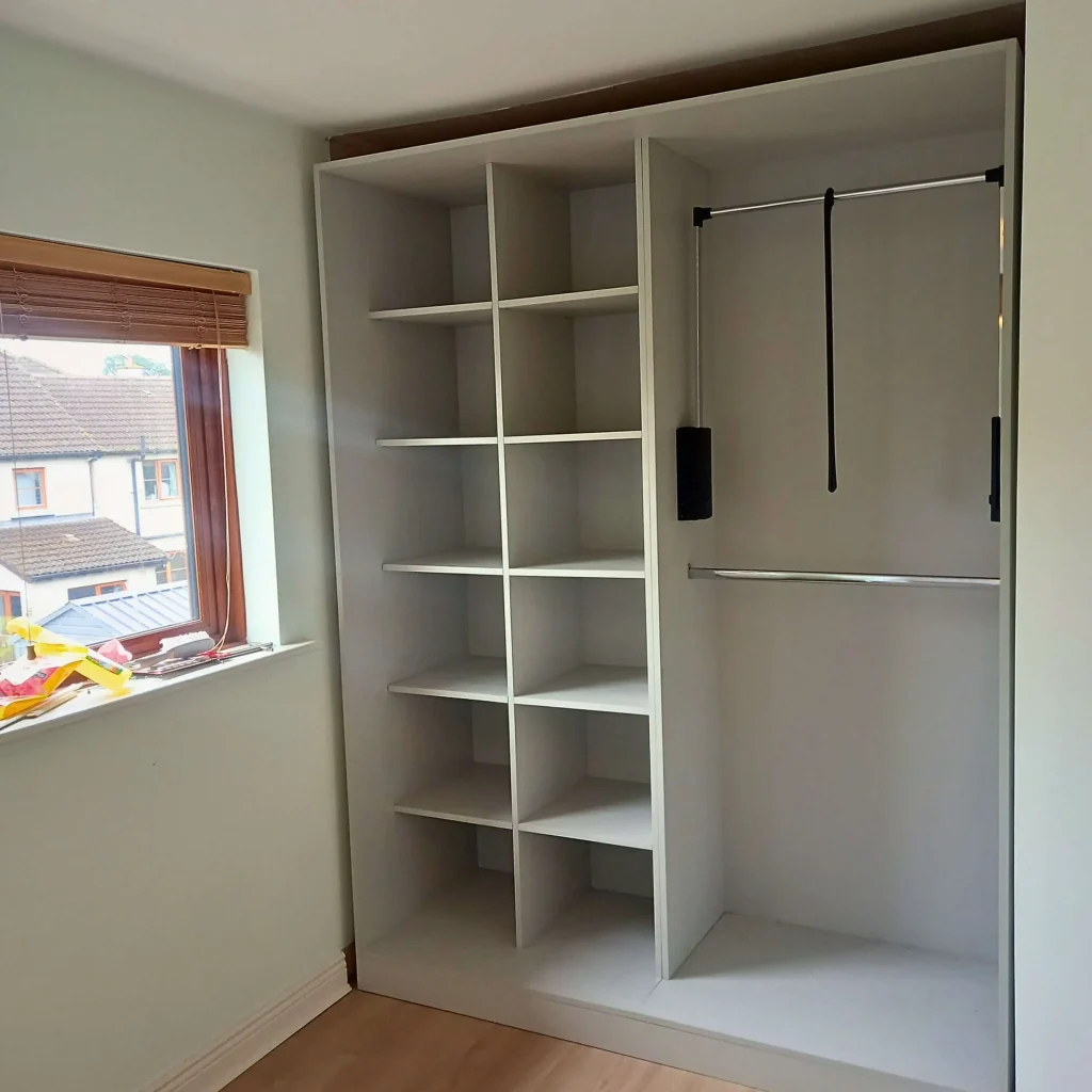 Built in wardrobe done at the Highlands, Drogheda. It was made out of Finsa Bama Beach melamine board. Our client was happy with the results and left us this review: