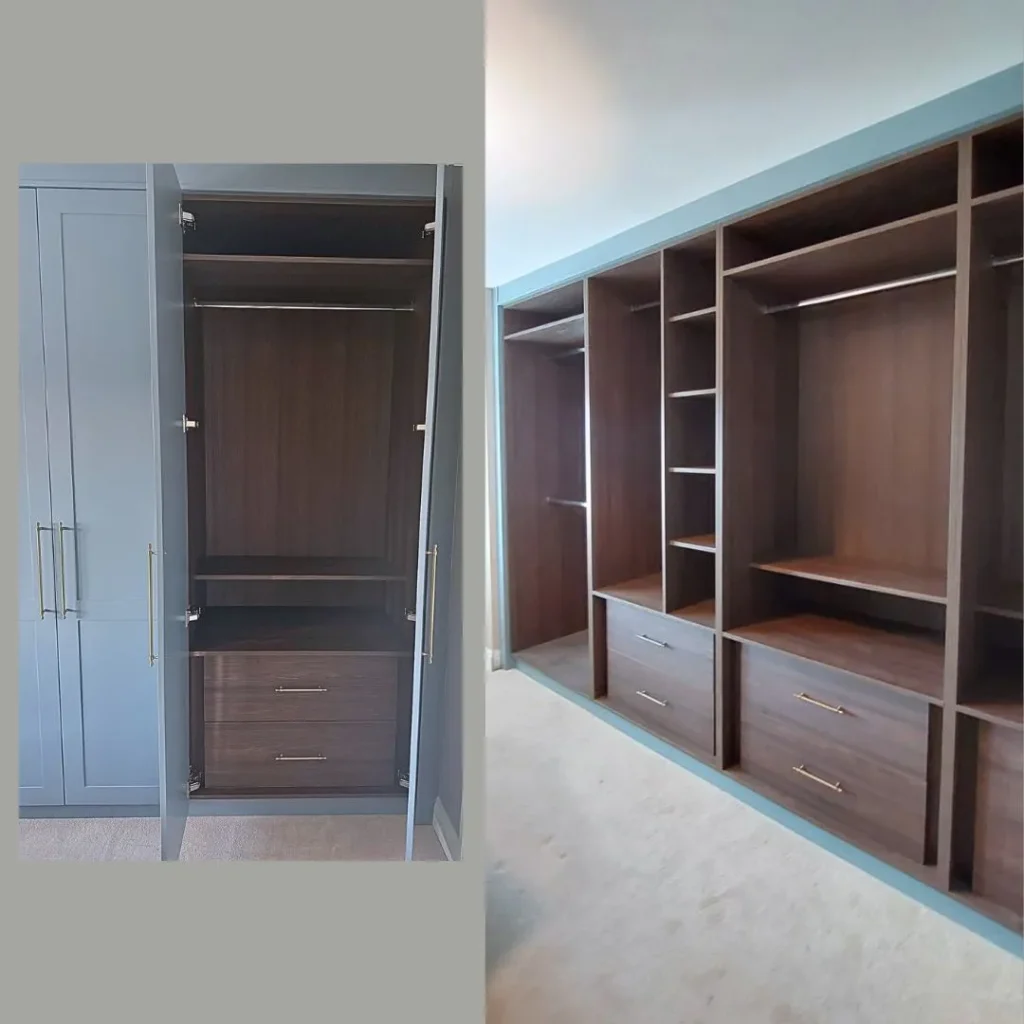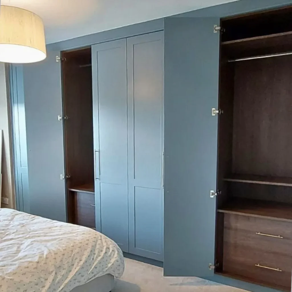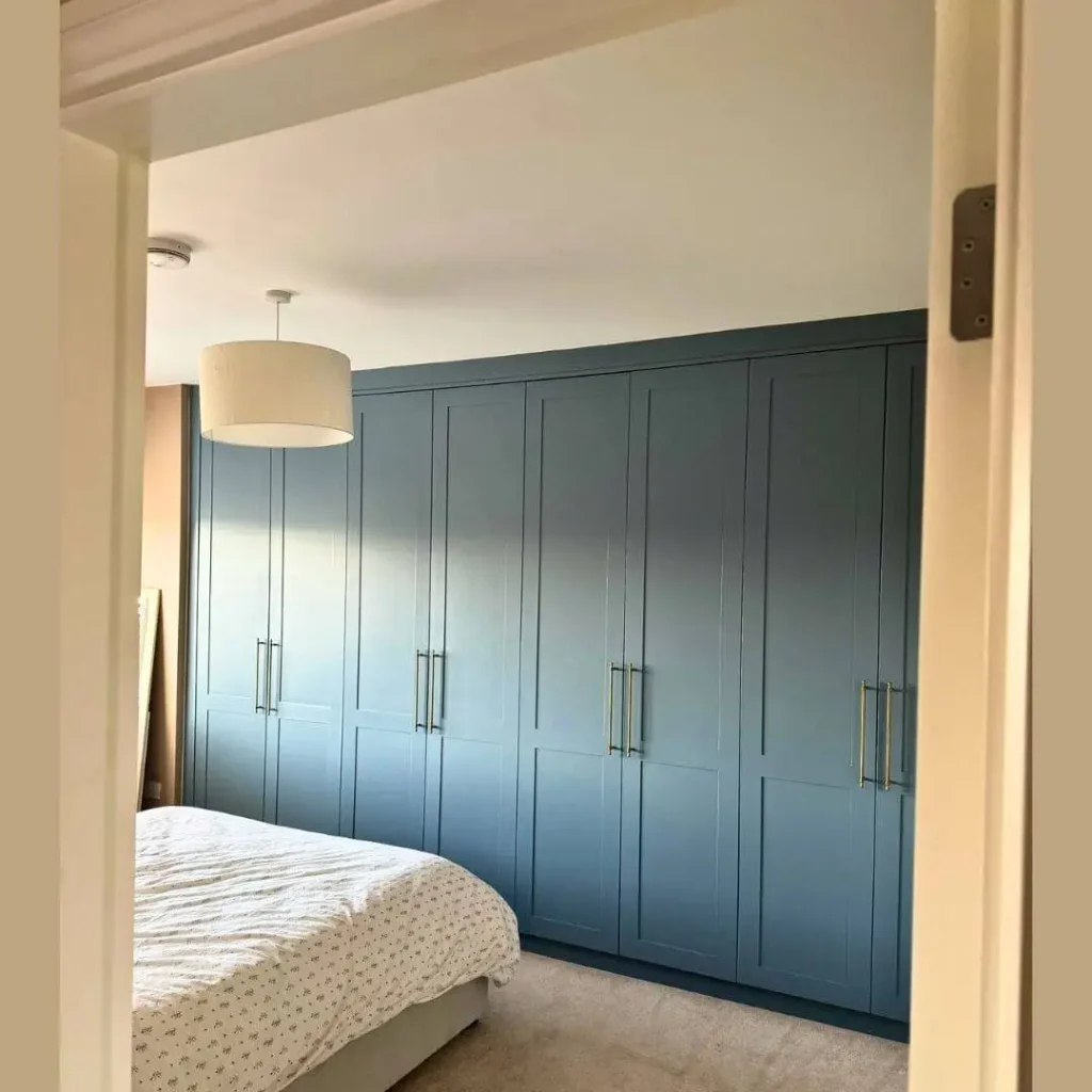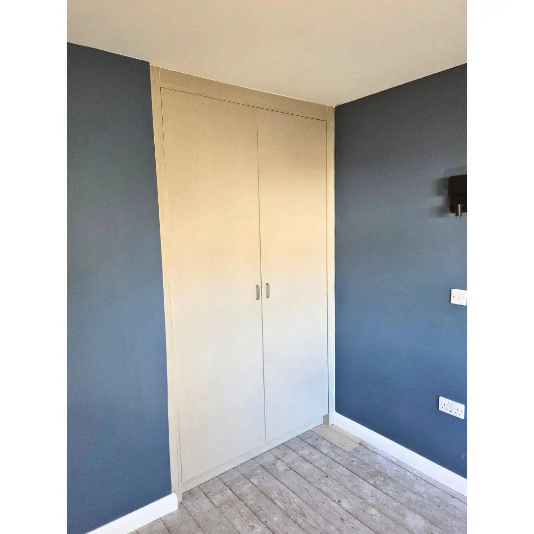Fitted wardrobe built for a client in Donacarney. The carcass was made of Finsa Roble Palma. The doors were painted with Farrow&Ball Selvedge. Here's the review our client kindly left us: