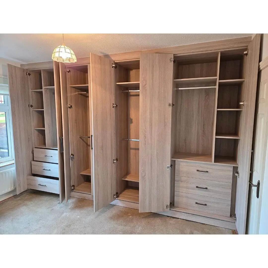 The entire wardrobe was made with Finsa Caledonian Oak and the handles chosen were the Kensington D Black Nickel. Here's the review our client kindly left us: